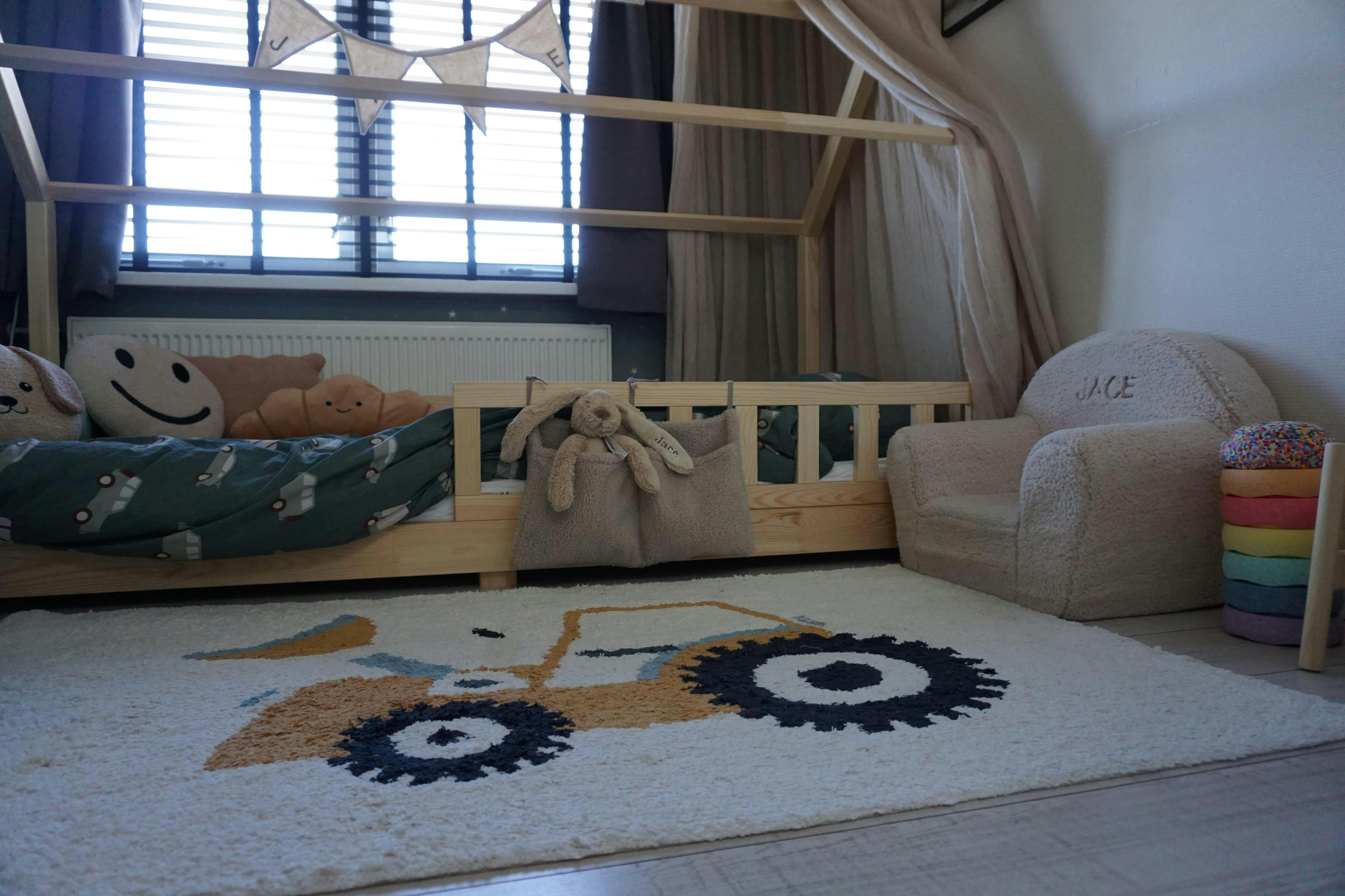 The Tractor rug offers a perfect match of bold colors to complete the boy's room.