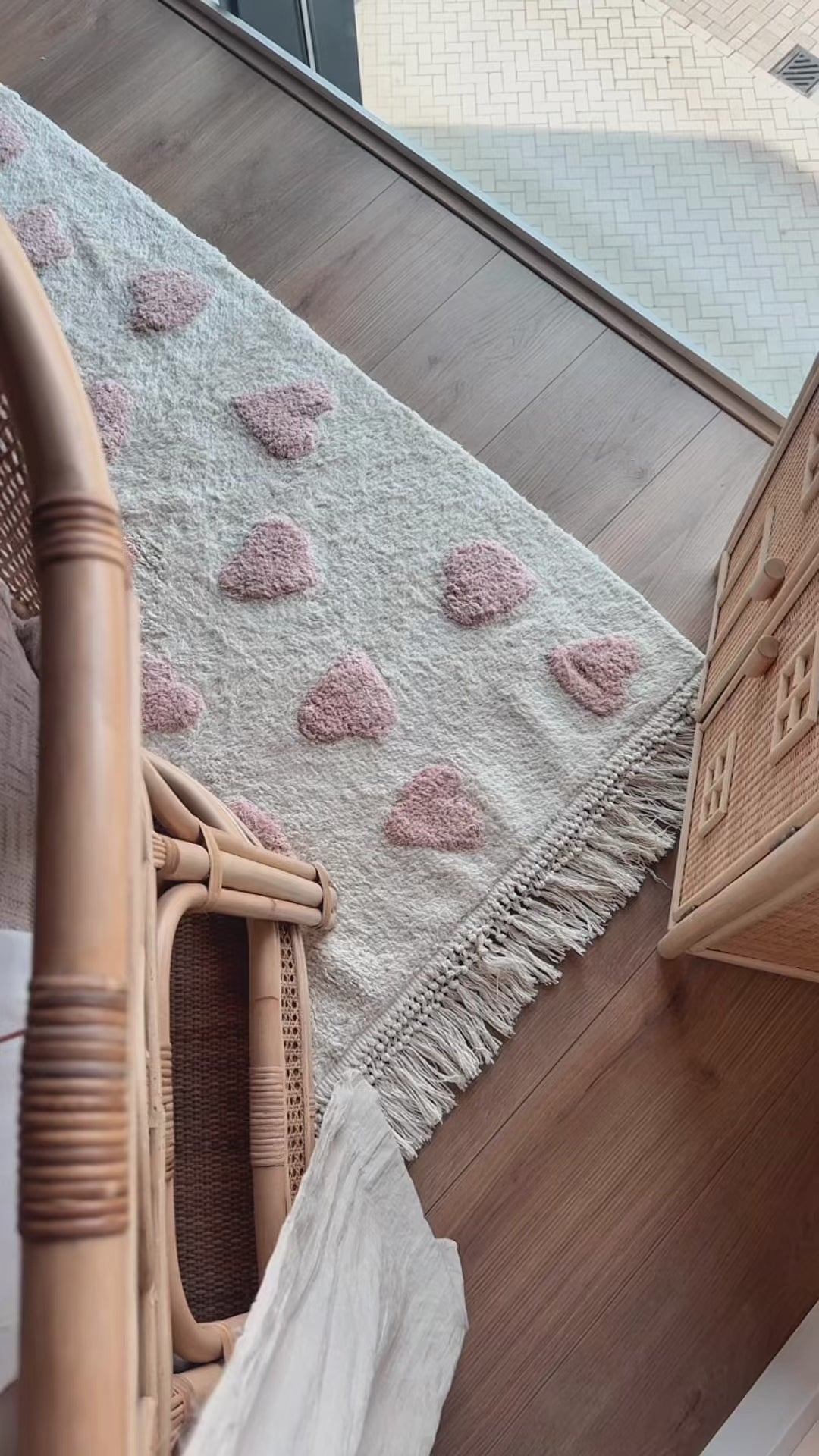 Le tapis de chambre d'enfant Blush Hearts associe le blanc cassé aux cœurs roses pour donner à la chambre d'enfant une atmosphère douce et chaleureuse.
