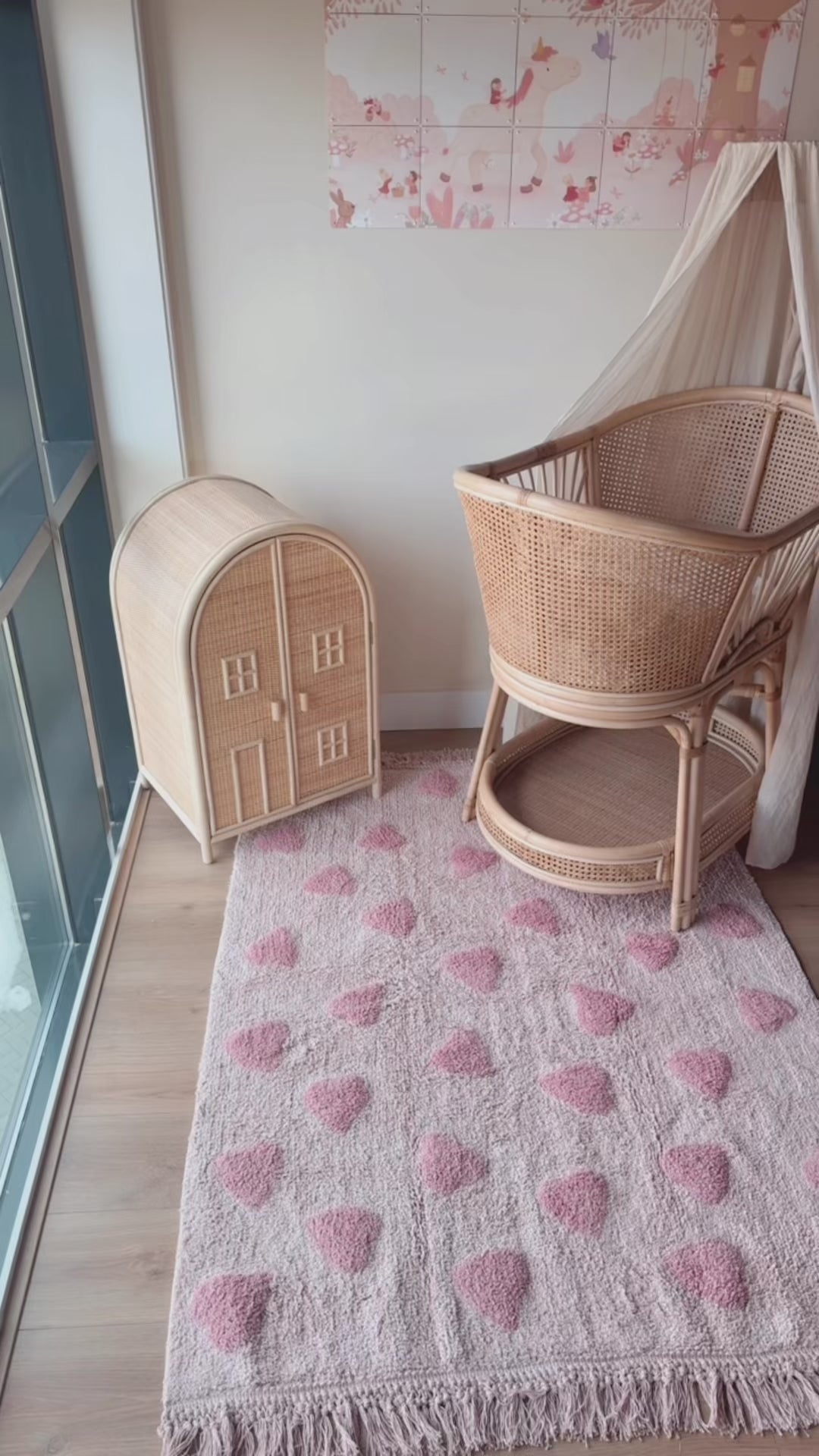 Le tapis de chambre d'enfant Rosy Hearts combine des tons roses doux pour donner à la chambre d'enfant une atmosphère chaleureuse et confortable.